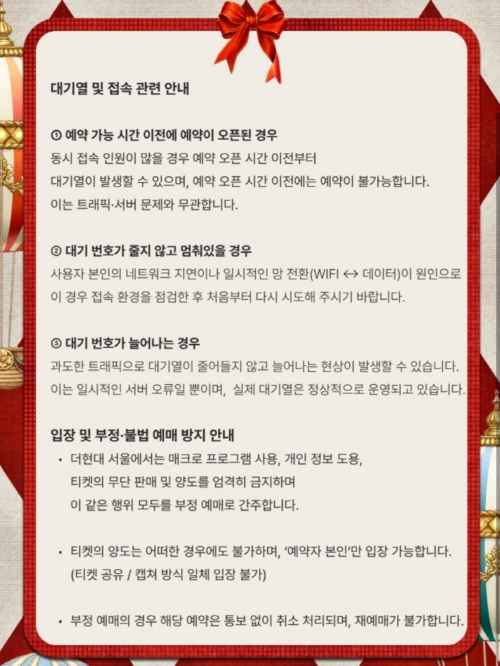 ✅ 관람객의 원활한 관람과 안전한 운영을 위해 온라인 사전 예약 또는 현장 웨이팅을 통해 입장 가능합니다.
