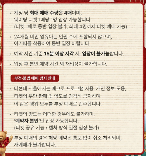 ✅ 계정 당 최대 예매 수량은 4매이며, 웨이팅 티켓 1매 당 1명 입장가능합니다.