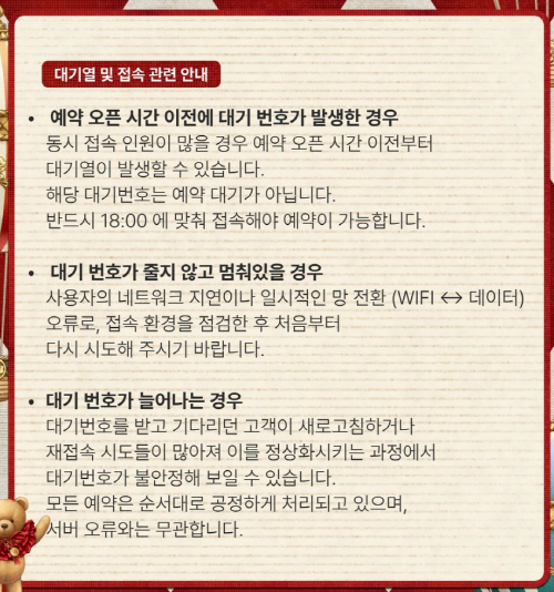 ✅ 웨이팅 티켓 1매로 동반 입장은 불가하고 한번에 최대 4명 티켓예매가 가능합니다.