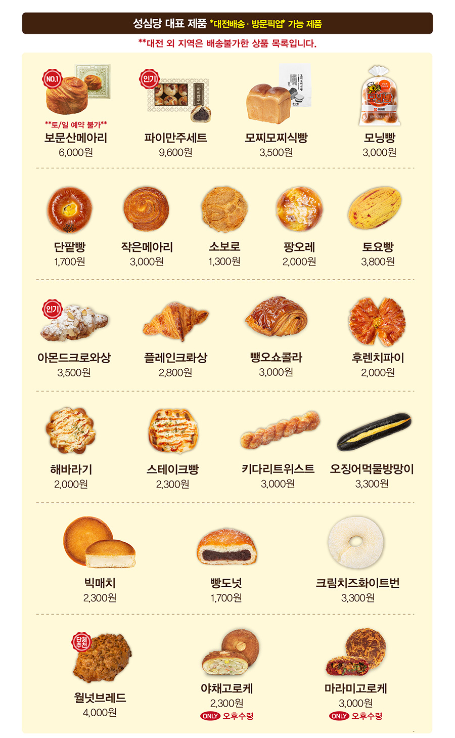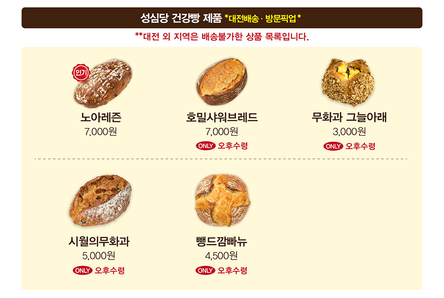 대전 지역에서만 주문이 가능한 빵입니다.