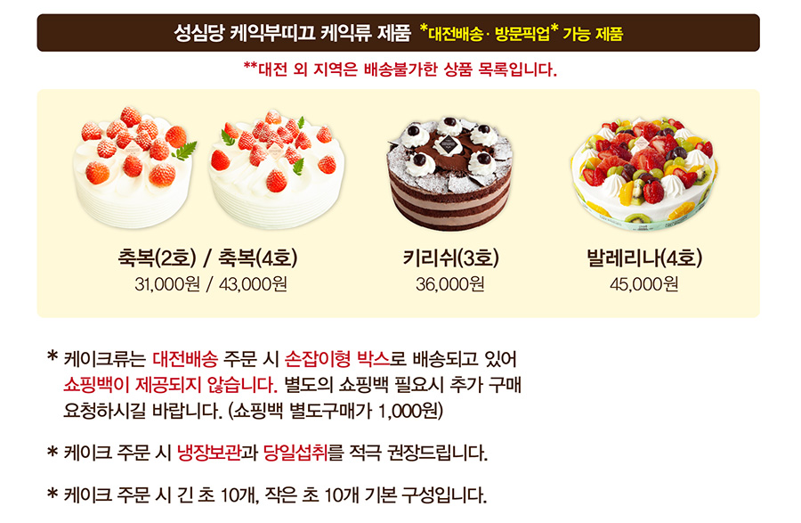 대전 지역에서만 주문이 가능한 케익입니다.