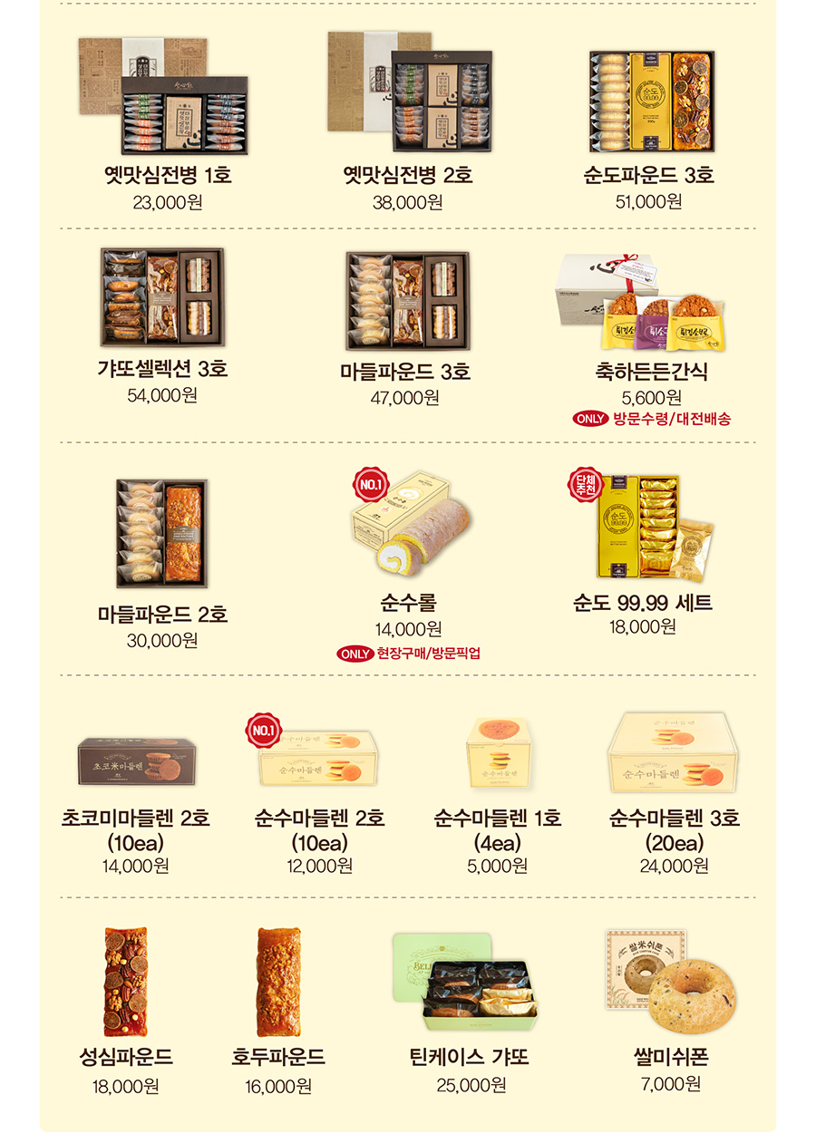 택배시 맛이 변할 우려가 없는 빵들로 구성이 되어 있습니다.