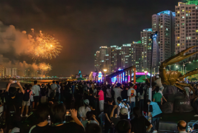 축제 폐막을 알리는 화려한 불꽃놀이